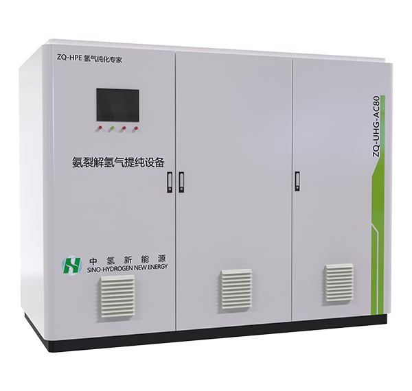 針對(duì)氨裂解制氫系統(tǒng)壓力低、溫度高的特點(diǎn),采用自主研發(fā)的特種金屬膜,開(kāi)發(fā)了ZQ-HPE-AC系列氫氣純化設(shè)備,與氨裂解制氫設(shè)備匹配性高、適應(yīng)性強(qiáng)。低壓、高溫氨裂解粗氫直接通入膜純化器,無(wú)需殘氨預(yù)處理(金屬膜耐高含量殘氨),熱利用率高,氫氣純化效率高,氫回收率高,穩(wěn)定性高。